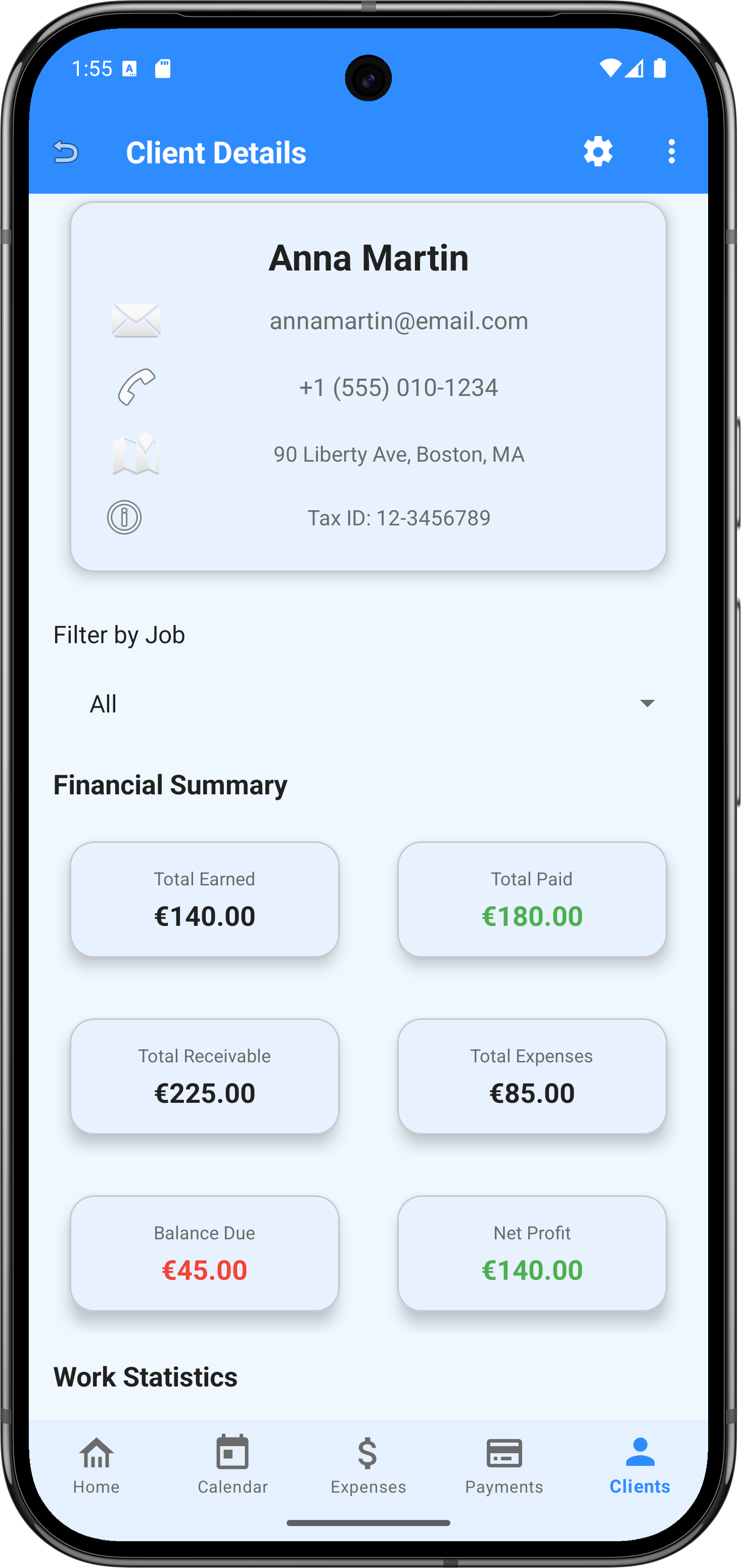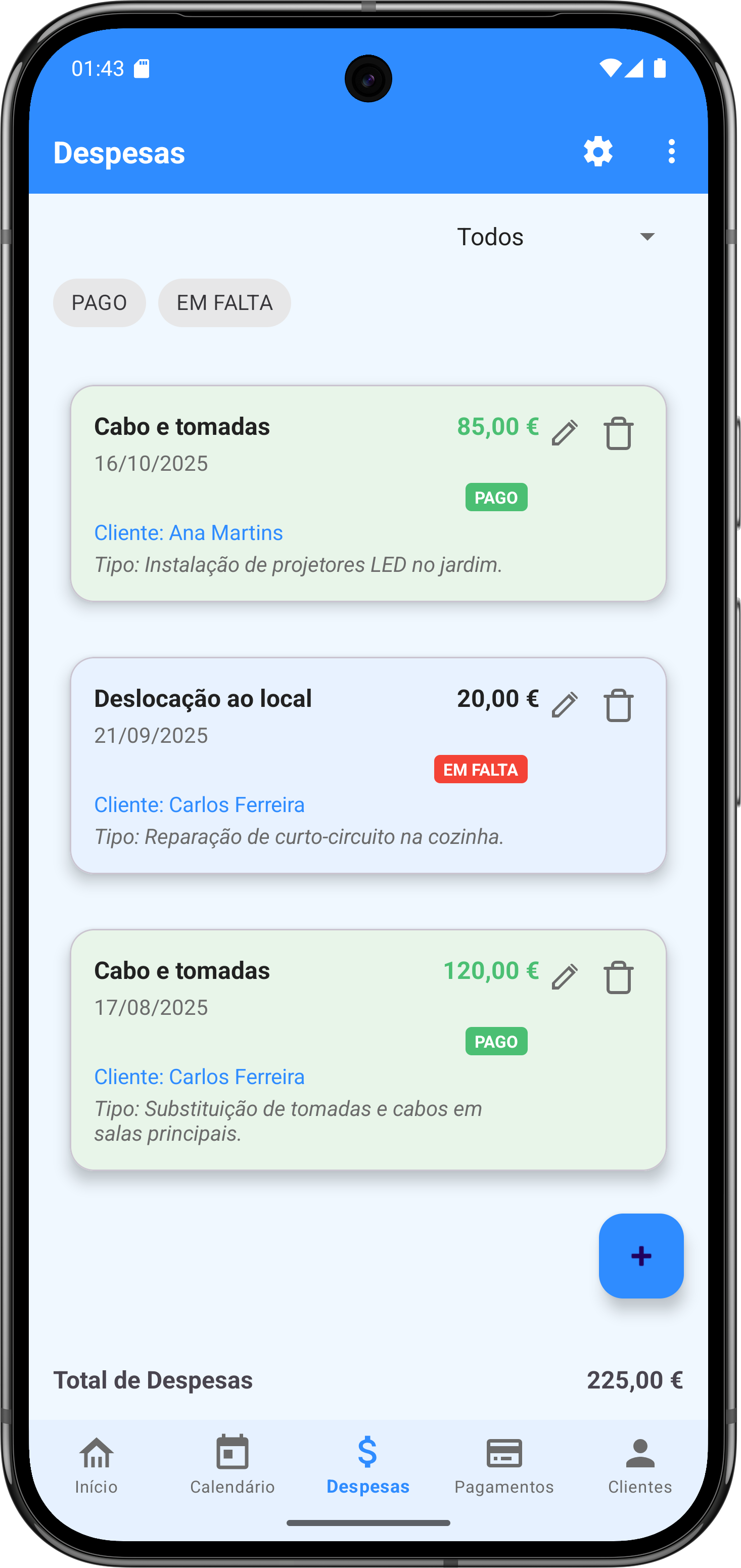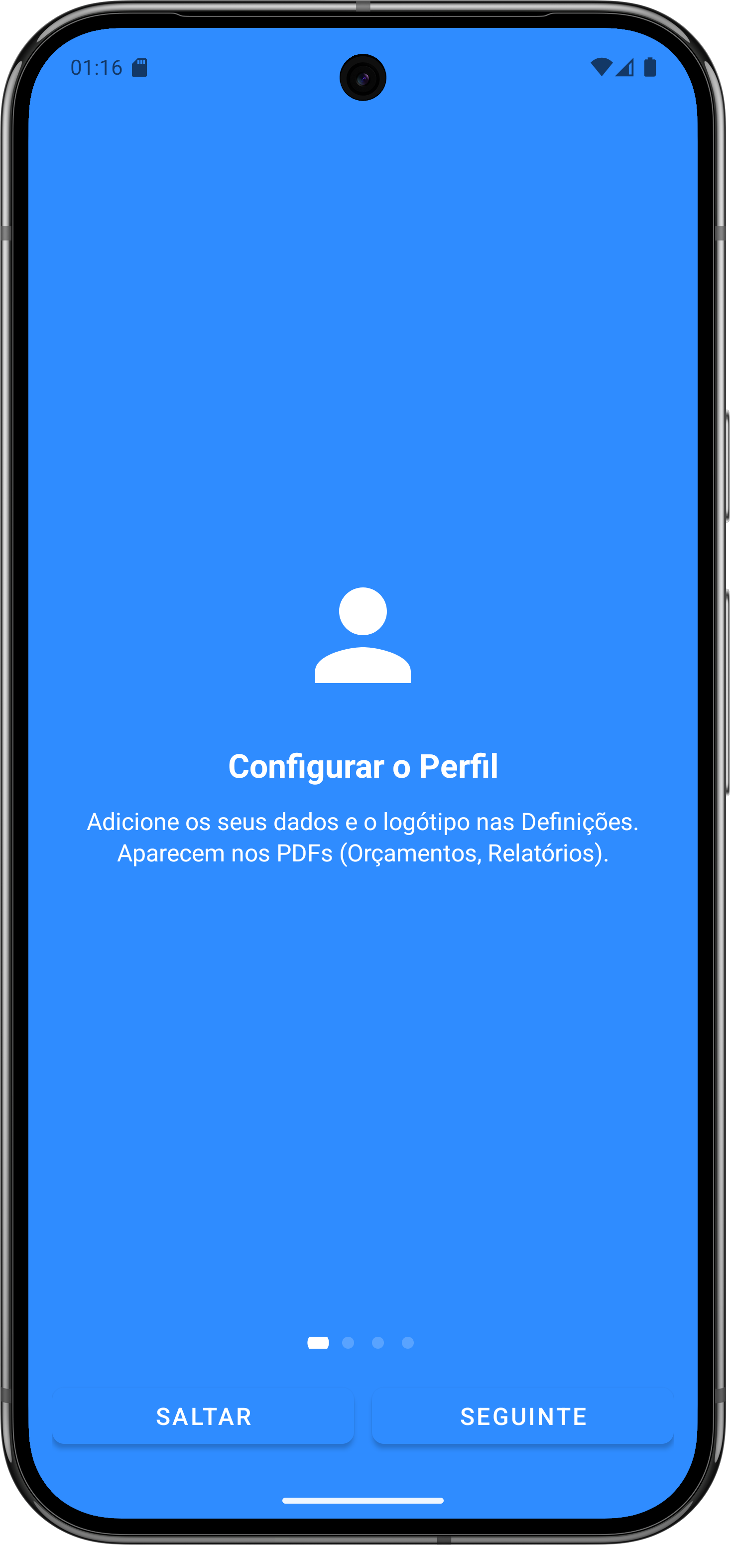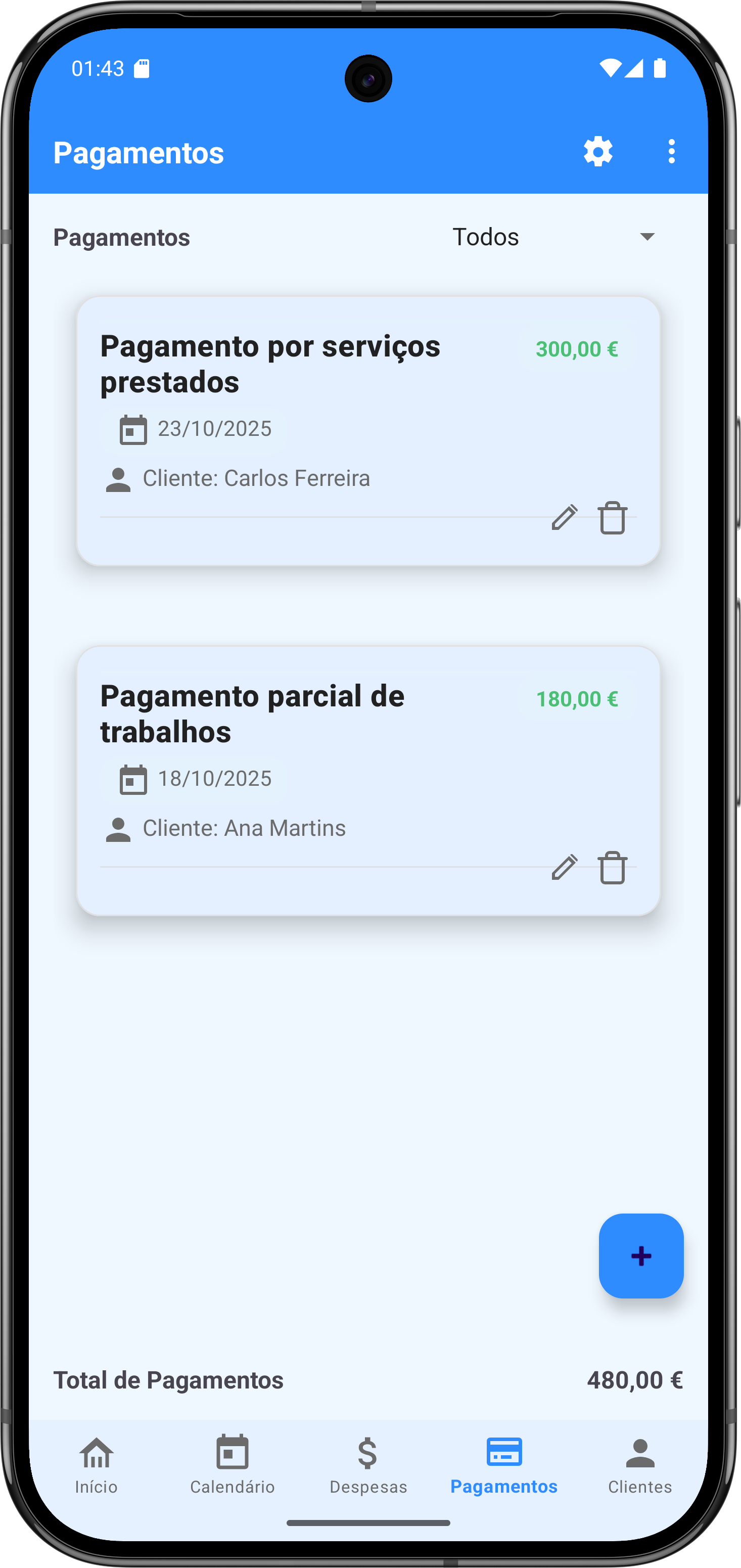 Ecrã Home da TaskChrono com cartões de rendimento, horas e atividade visíveis