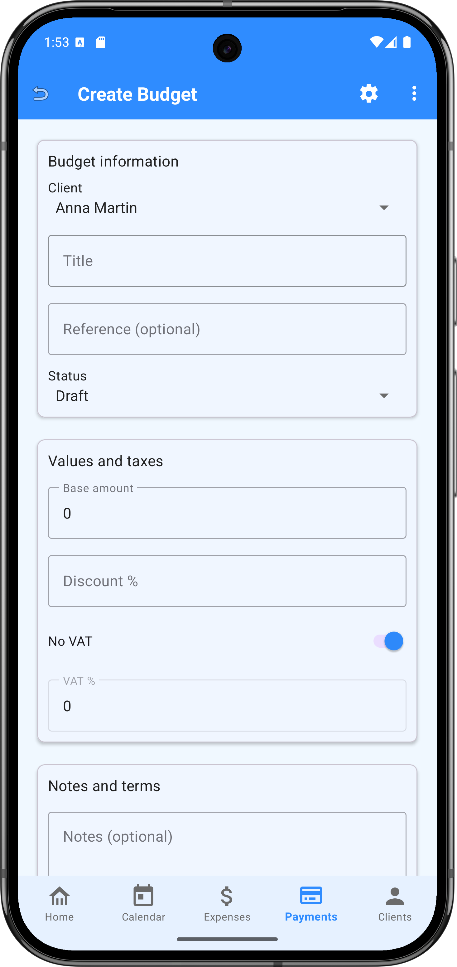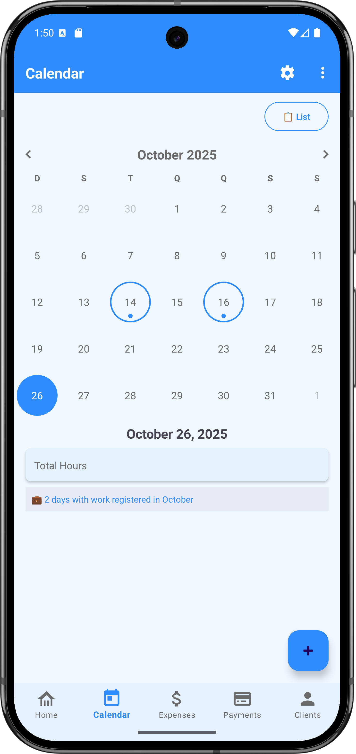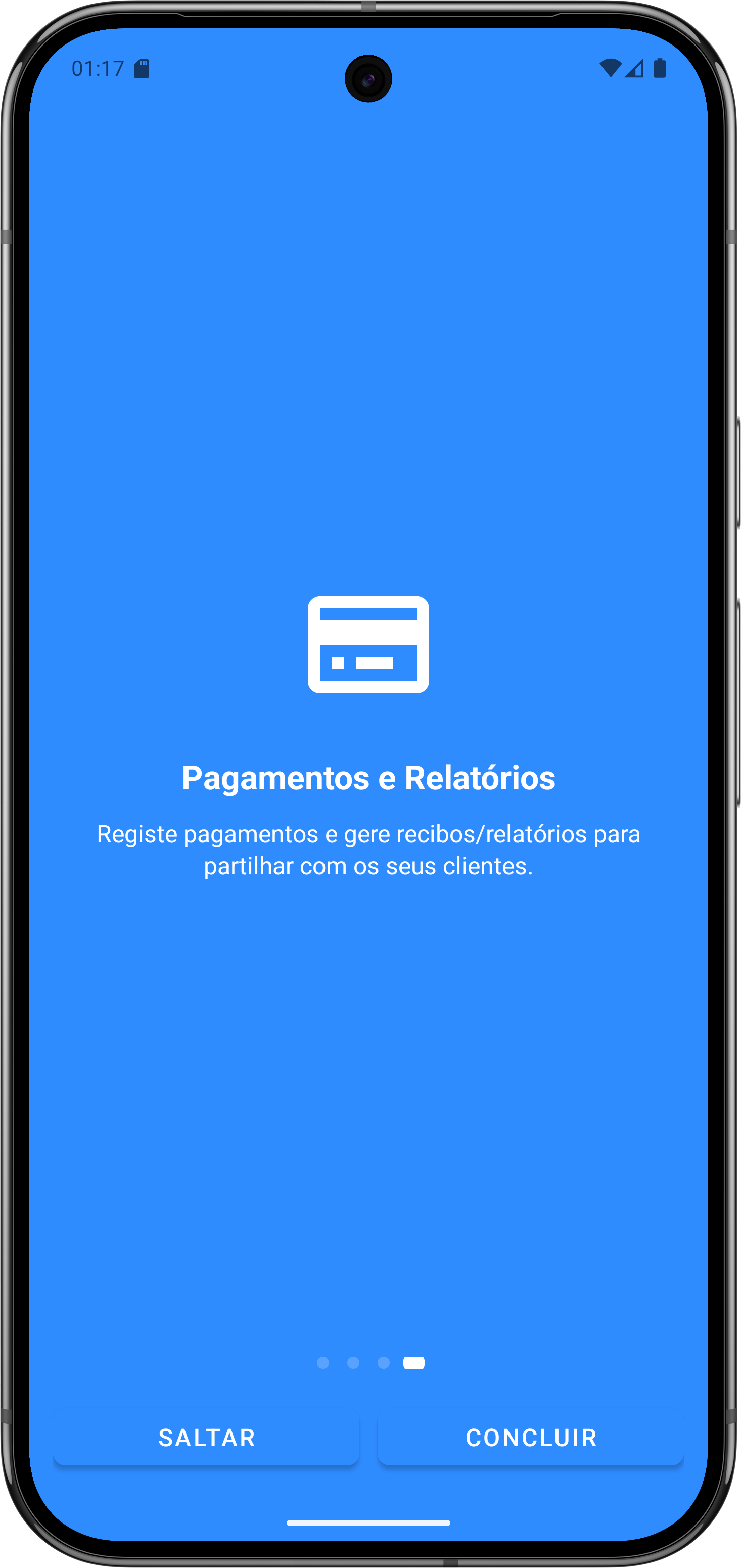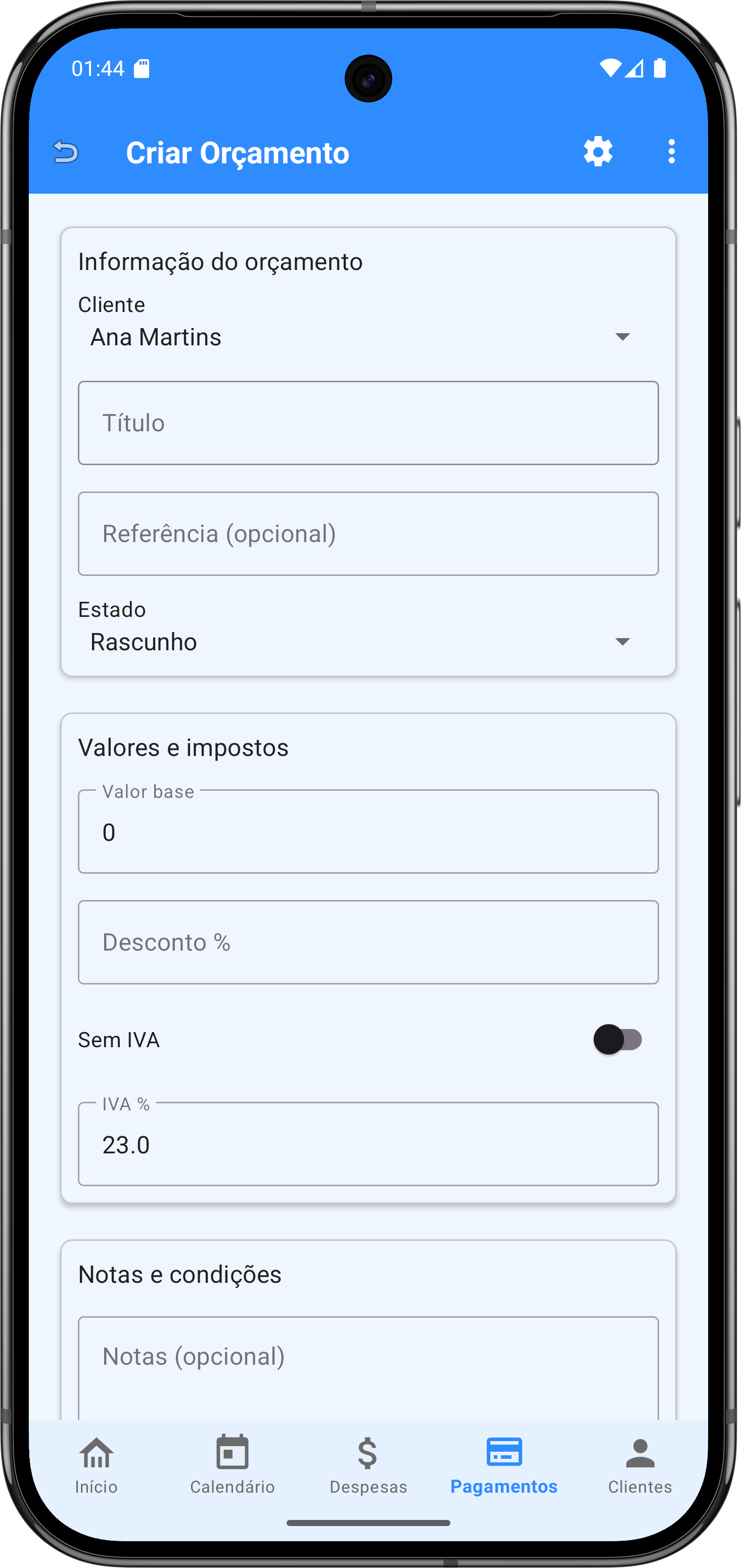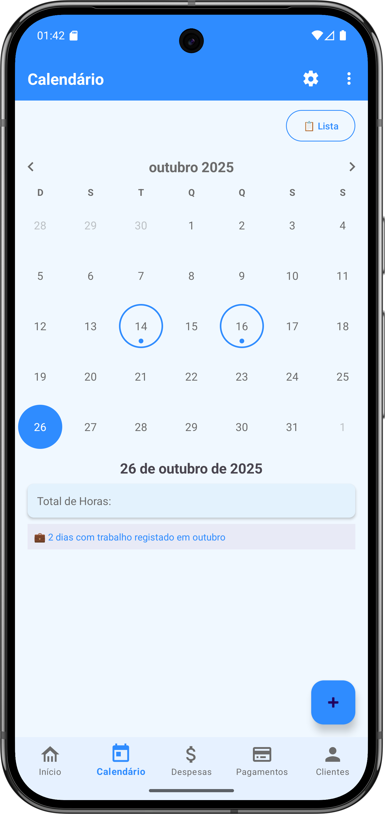 Ecrã Home da TaskChrono com cartões de rendimento, horas e atividade visíveis